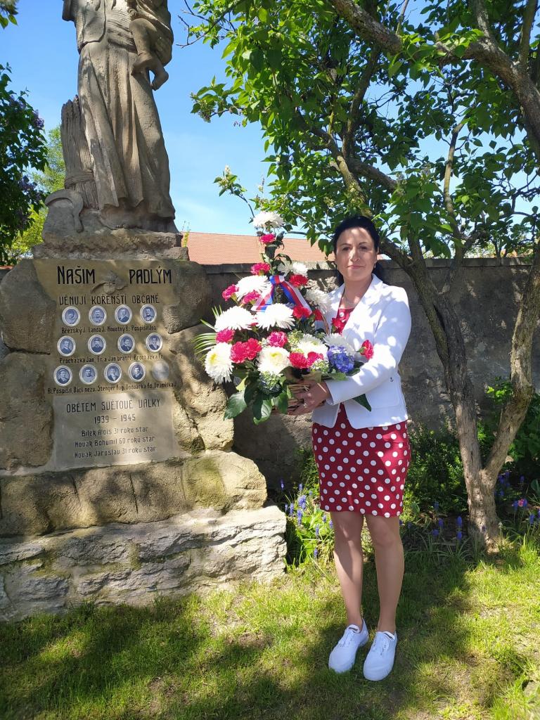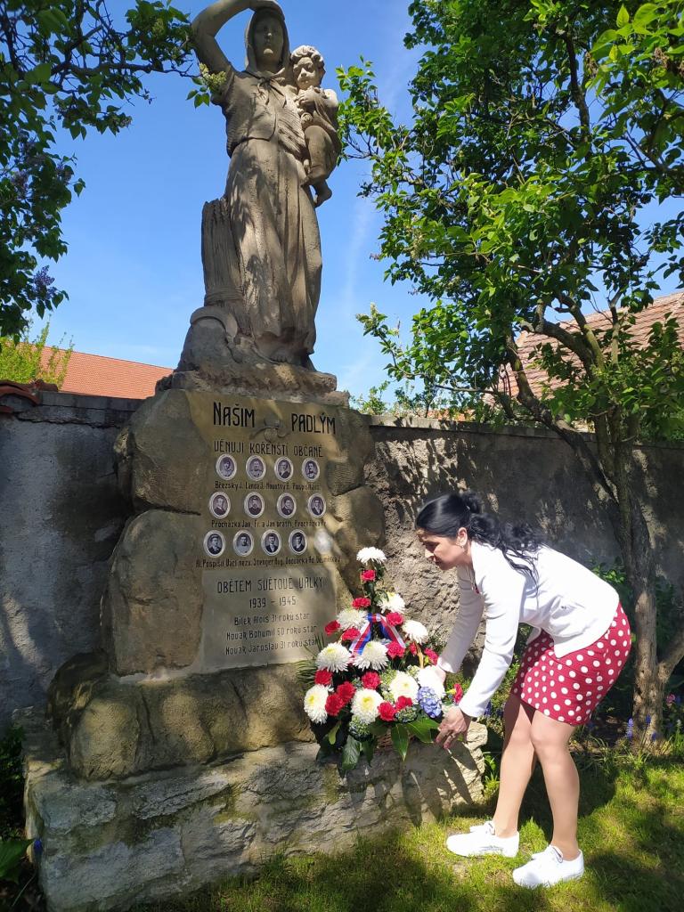 Kořenice, 8.5.2023. Je nutné si připomínat, že bez statečnosti a rozhodnosti není svoboda ani nezávislost samozřejmá. Uctění památky obětem války položením kytice u Pomníku padlých v 1. a 2. světové válce