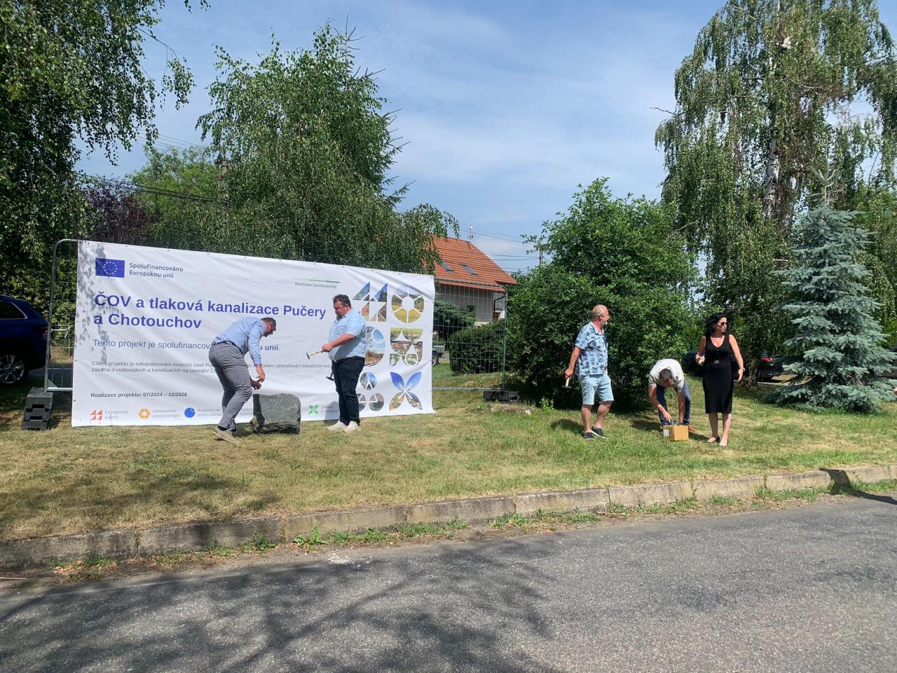 A je to tady! Dne 27.6.2024 předání staveniště pro vybudování ČOV, tlakové kanalizace, vodovodu přivaděče do dvou místních částí Chotouchov a Pučery
