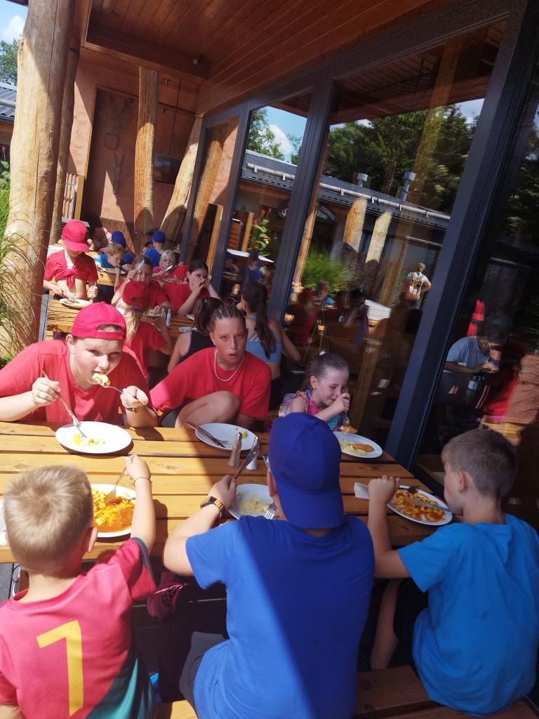 Příměstský tábor Kořenice 2024 - den čtvrtý. BUSem do ZOO Dvůr Králové, mnoho krásných zvířátek, vynikající oběd, dokonce i u svíčkové nezůstalo maso na talíři a dále pak lanový park, dětské hřiště a především, super nálada po celý den