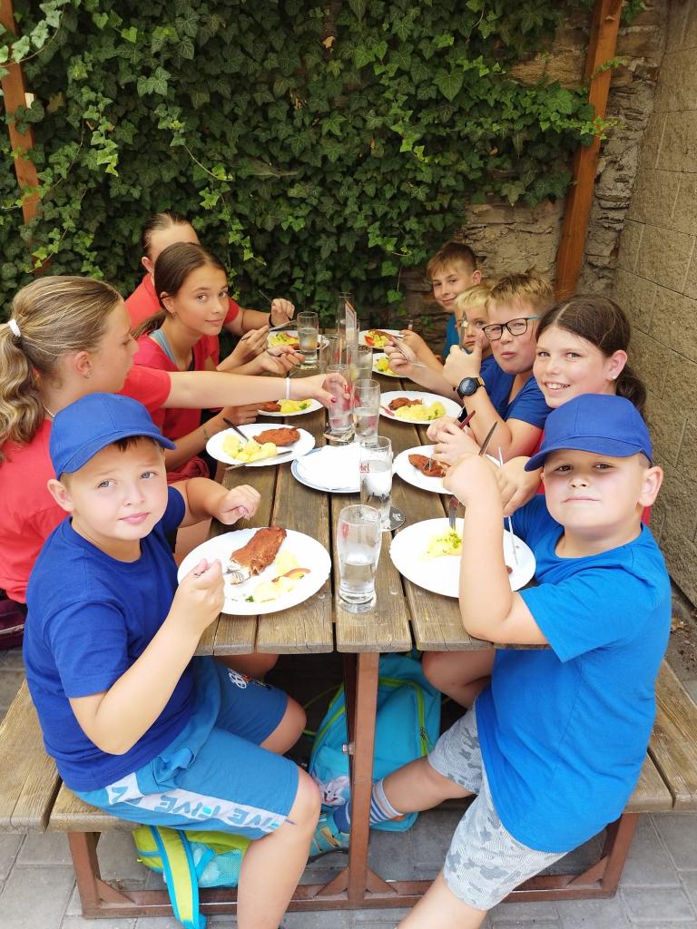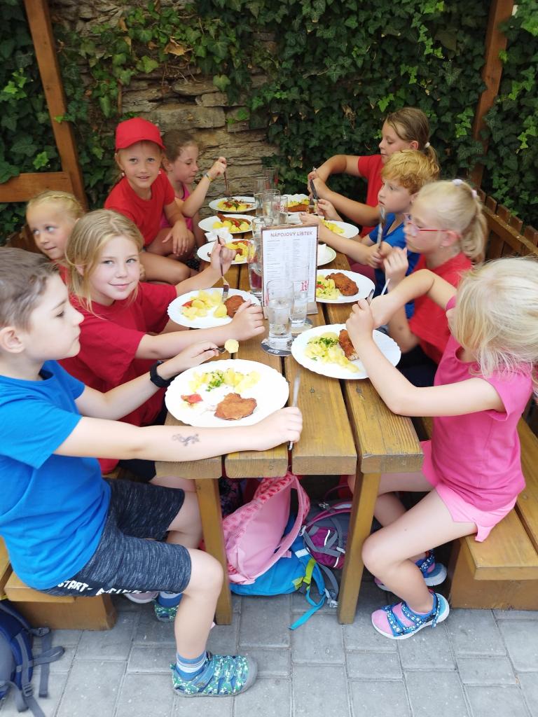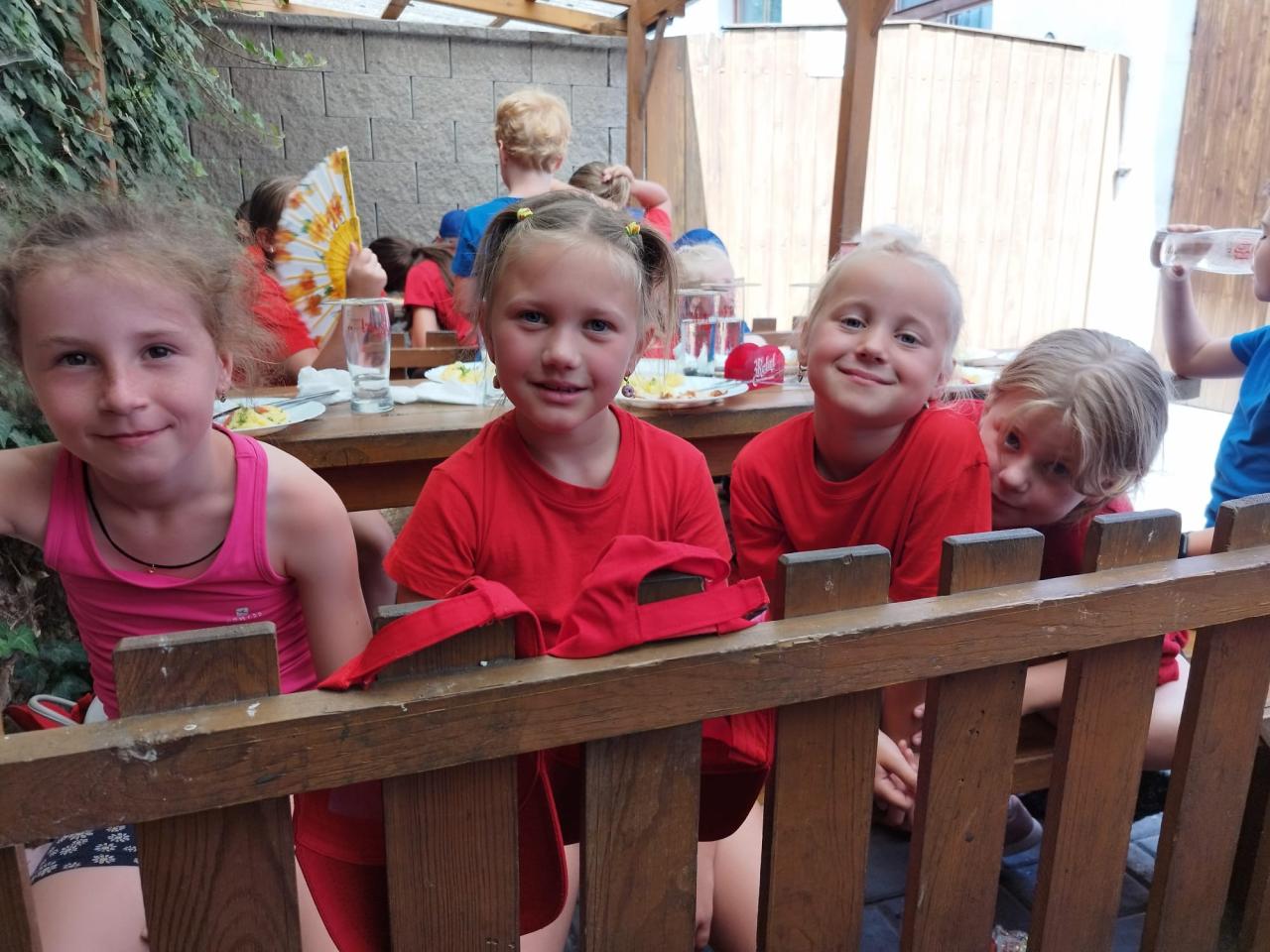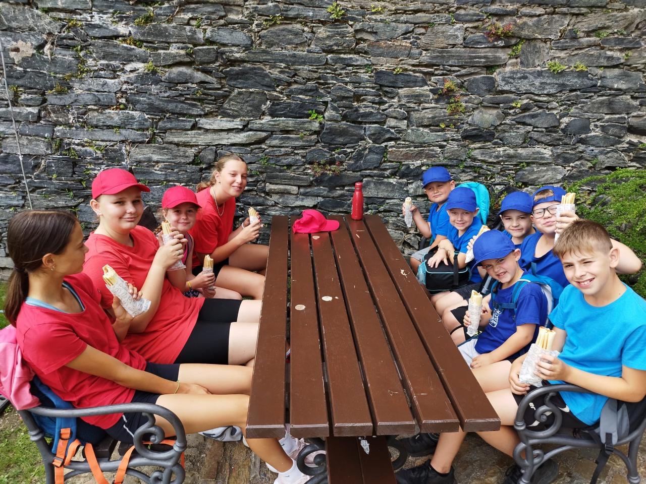 Příměstský tábor Kořenice 2024 - den druhý. Dnes vzdělávací den na zámku Žleby a příjemná procházka v krásném parku a jeho okolí zakončena pozdějším obědem U Kosů. Všichni jsme si to užili.