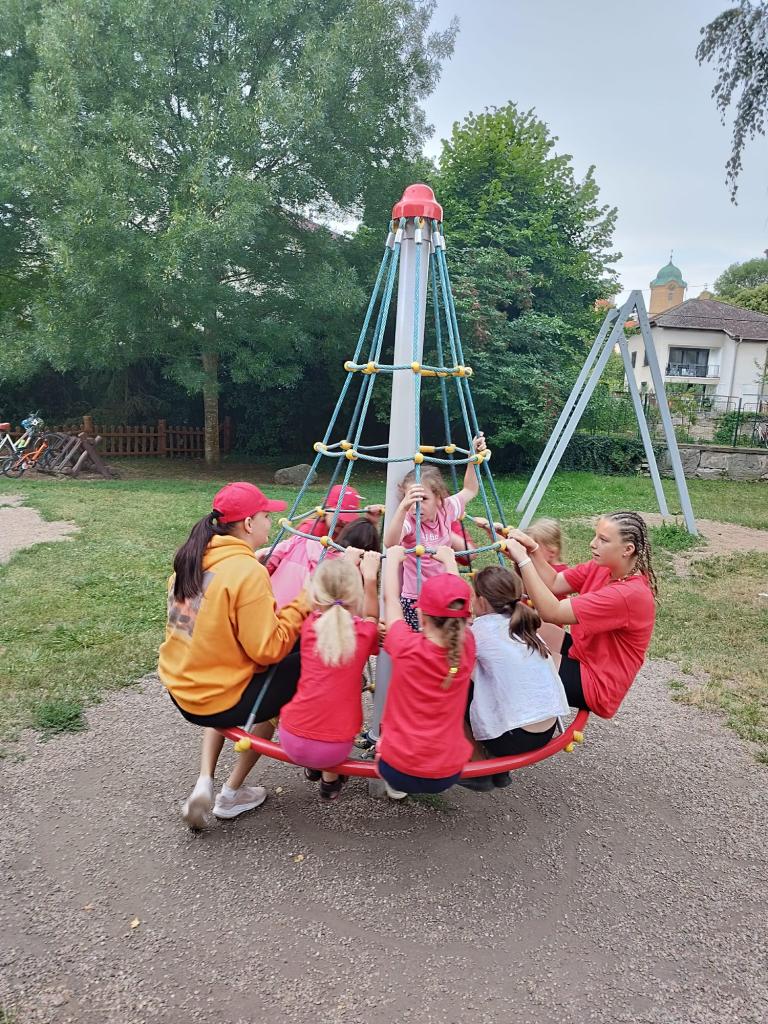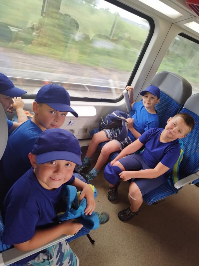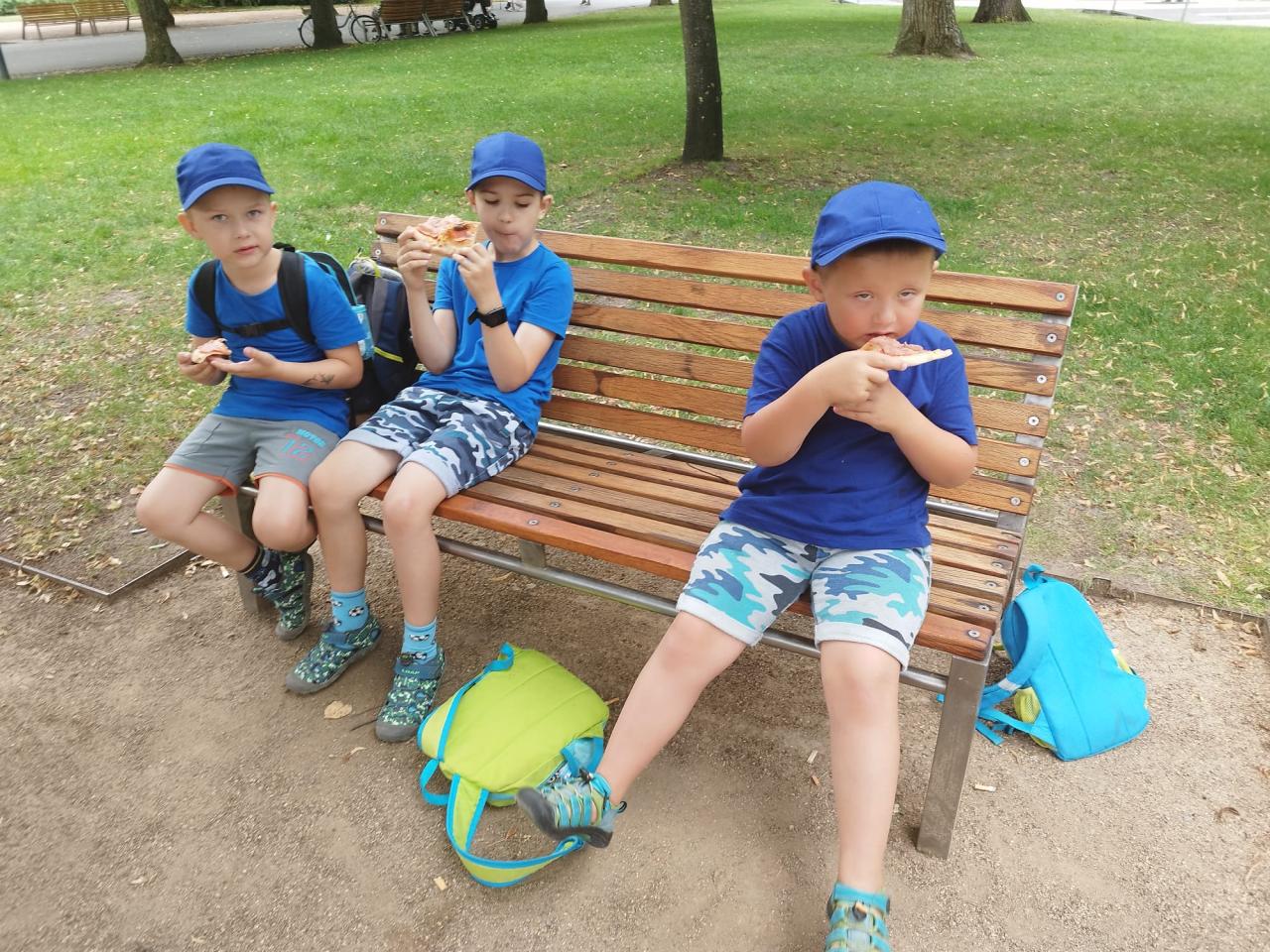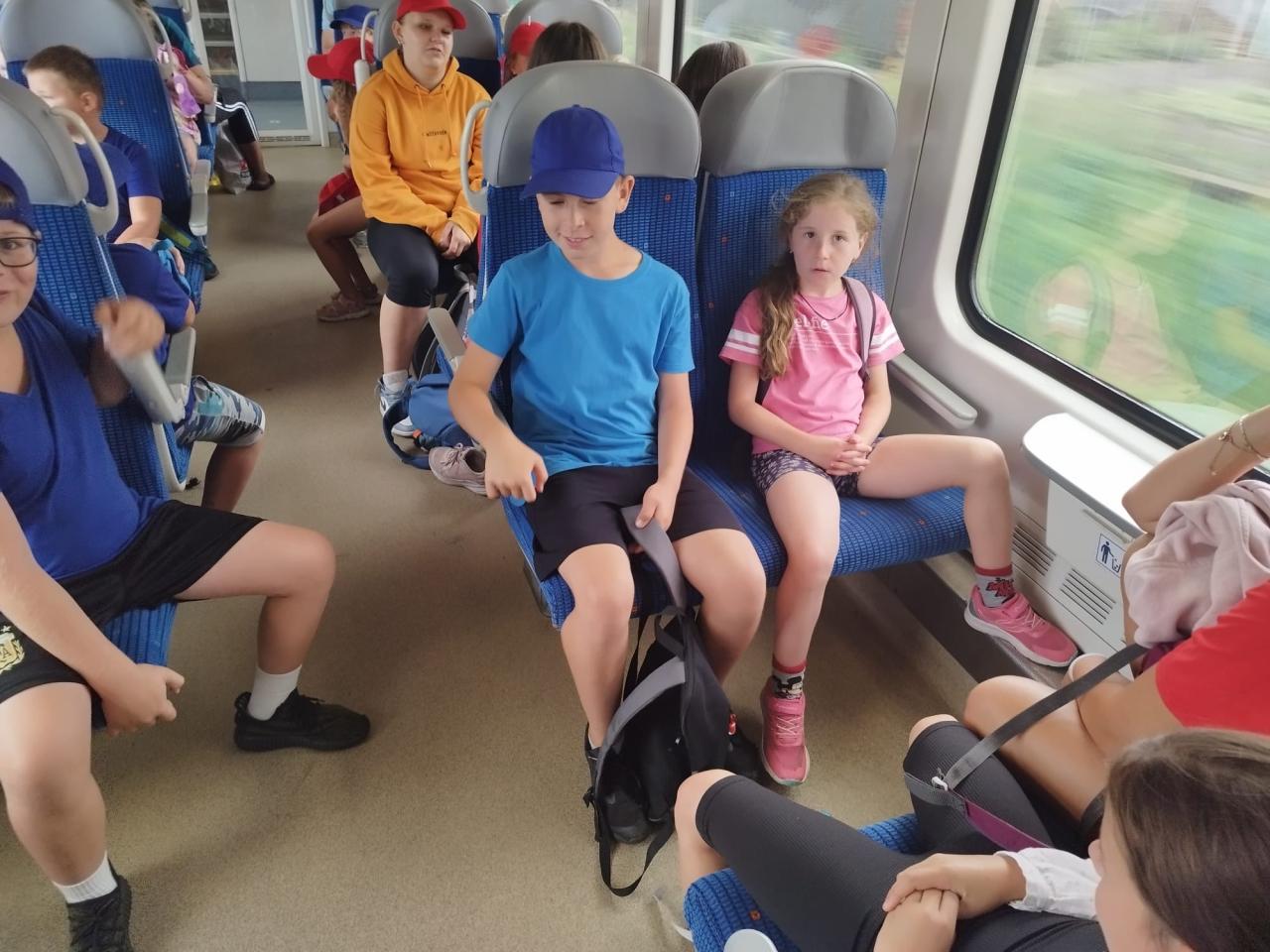 Příměstský tábor Kořenice 2024 - den třetí. Z Kořenic vlakem do Poděbrad, procházka po kolonádě, piknik s pizzou, jízda vláčkem k soutoku, vynikající poděbradská zmrzka a po celý den skvělá nálada.