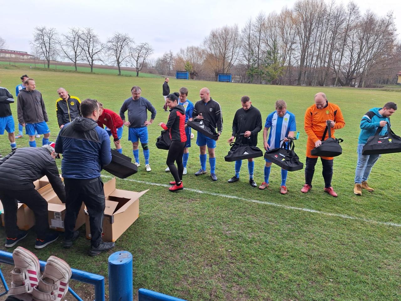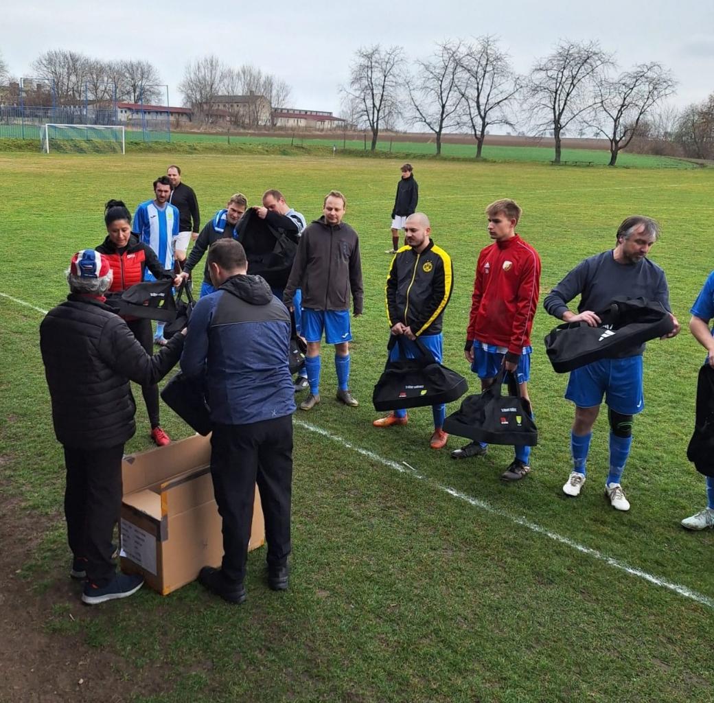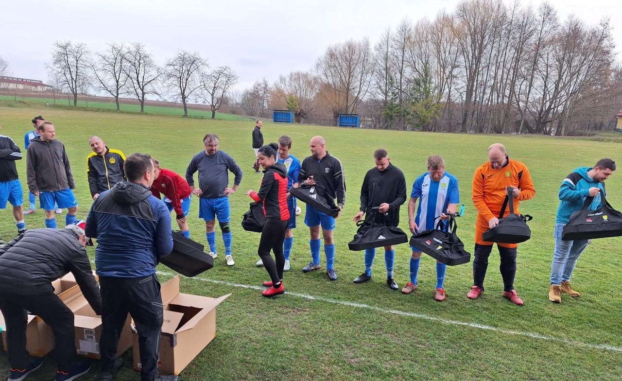 Předání sportovních tašek fotbalistům TJ Úsvit Kořenice