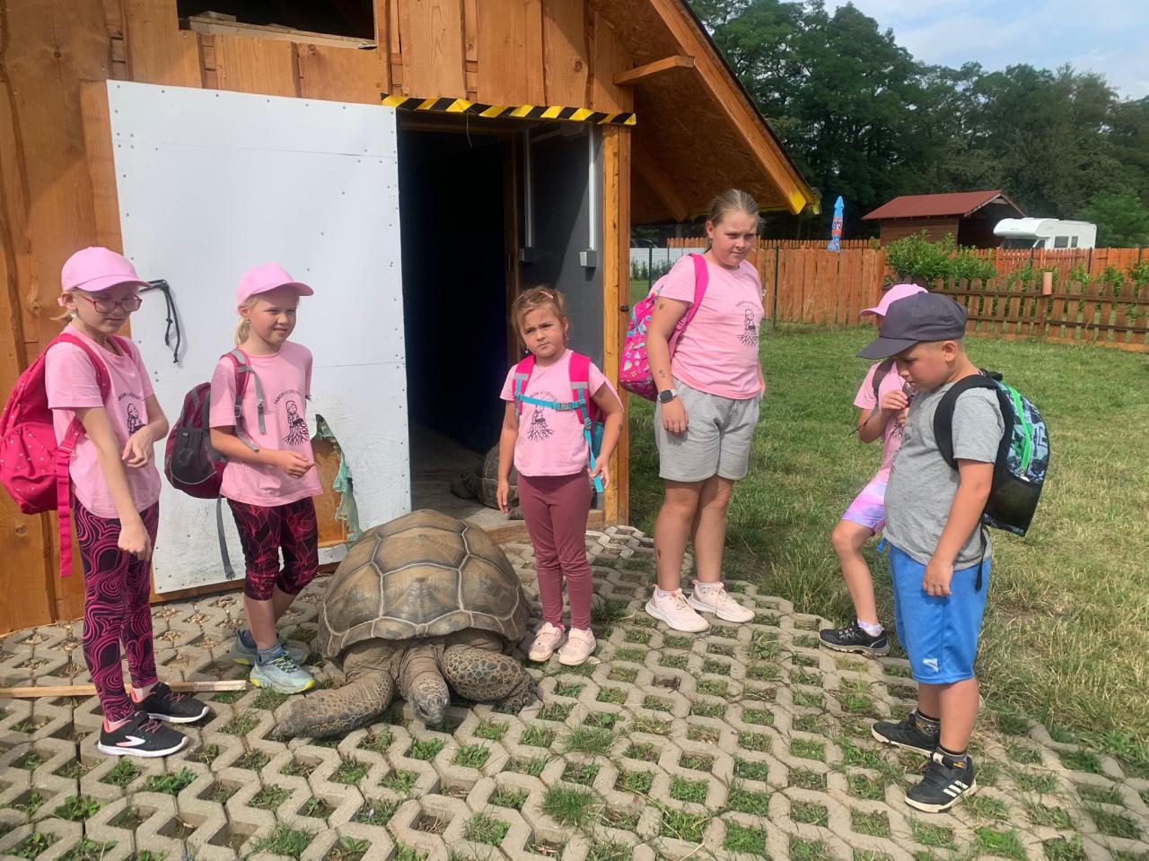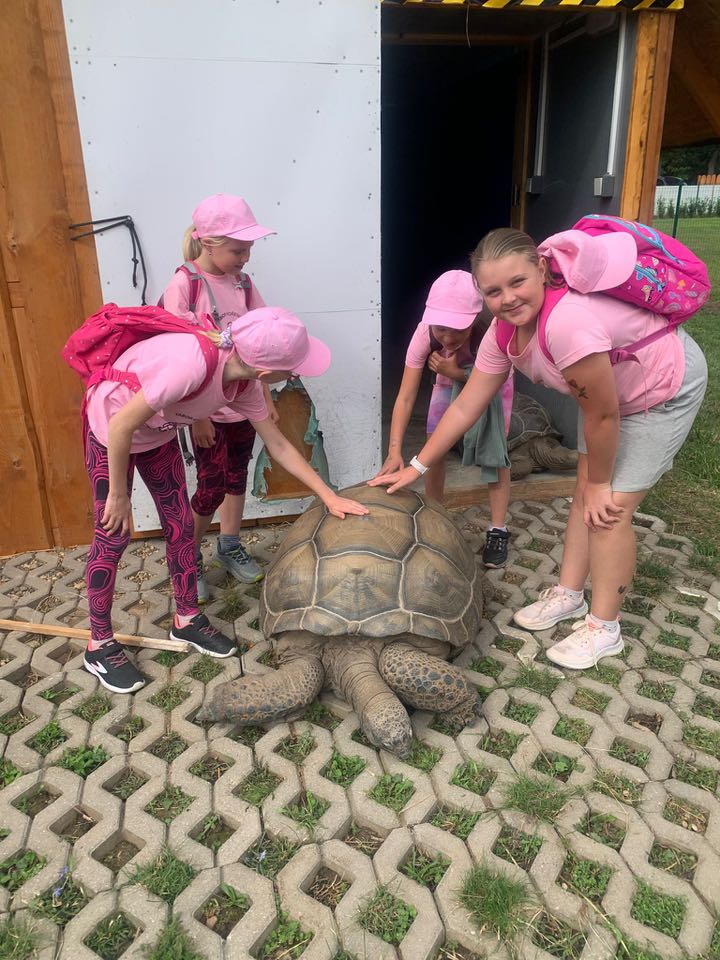 Tábor Kořenice - 16.7.2025 - den třetí - Výlet BUSem do Zooparku Zelčín, komentovaná prohlídka o zvířátkách, která byla velmi zajímavá. Nesmělo chybět tvoření, nechyběla ani pizza a trampolíny. Závěr opět zakončen dobrotami